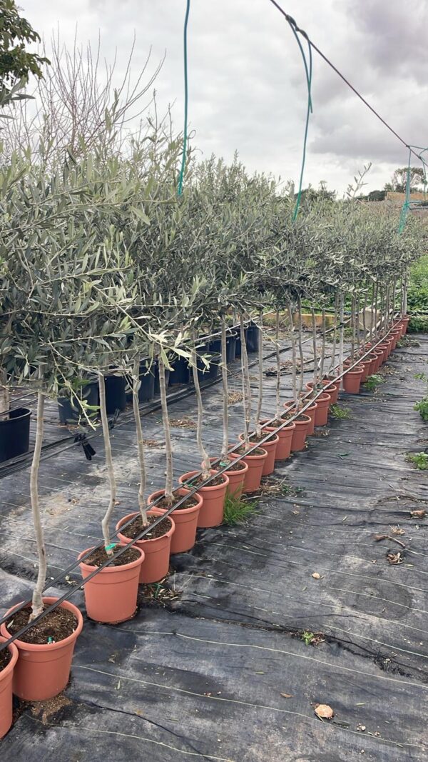 Selected olive tree with girth 5-10cm, trunk 80-90cm and height 130-150cm. Suitable for gardens and landscaping projects in Malta.